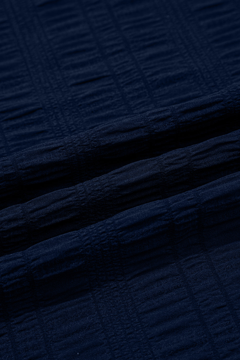 - This two-piece set features a textured square neck top and shirred high waist shorts.
