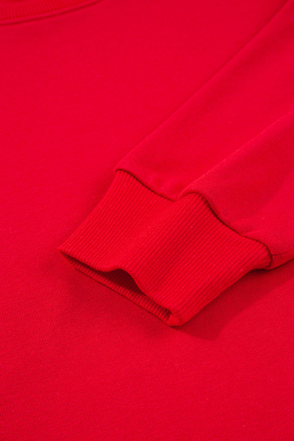 Fiery Red Varsity Striped Sleeve Drop Shoulder Sweatshirt and Short Set