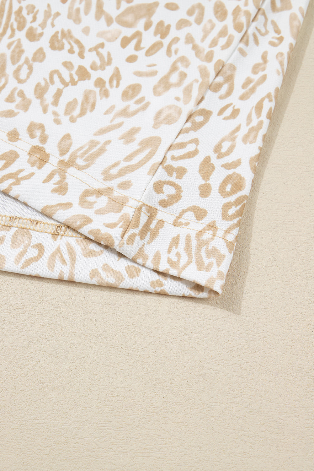 Khaki Plus Size Ruffled Arm Leopard Sweatshirt