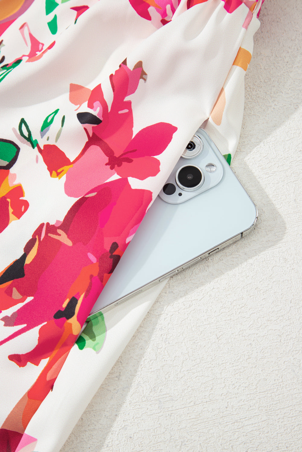 This floral dress plus features a flattering fit style with flowing effect.