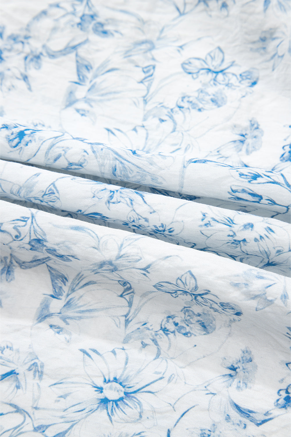Sky Blue Floral Ruffled Short Sleeve Bow Back Square Neck Blouse