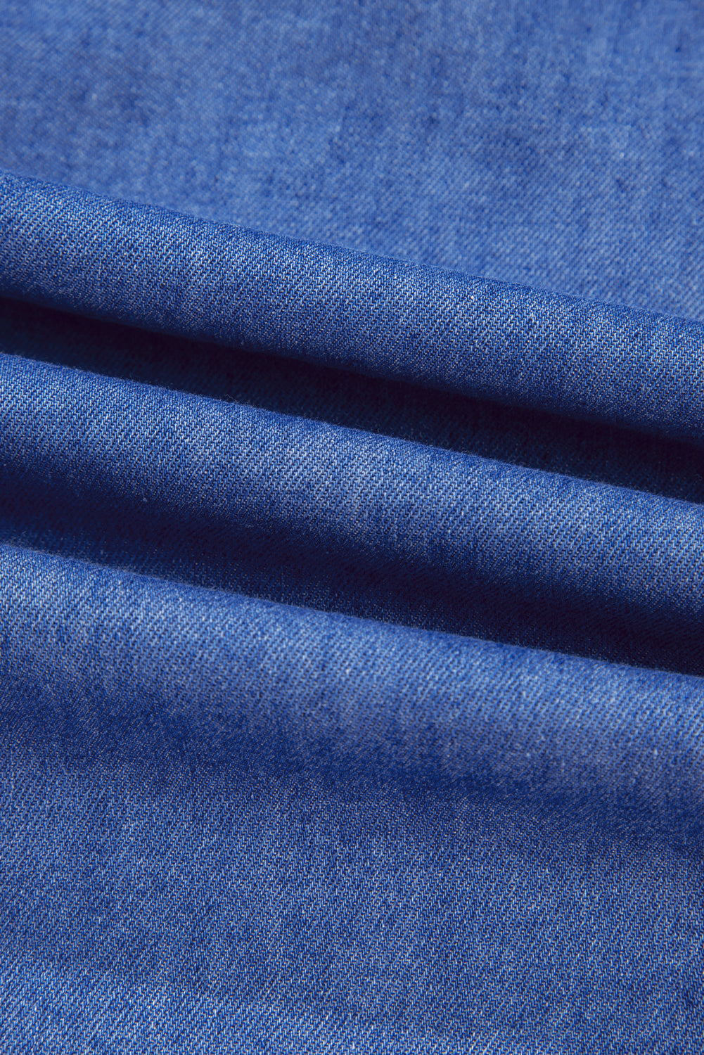 Sky Blue Mineral Wash Cap Sleeve Frilled Button Up Denim Shirt